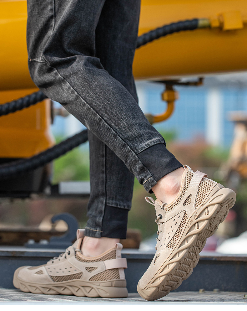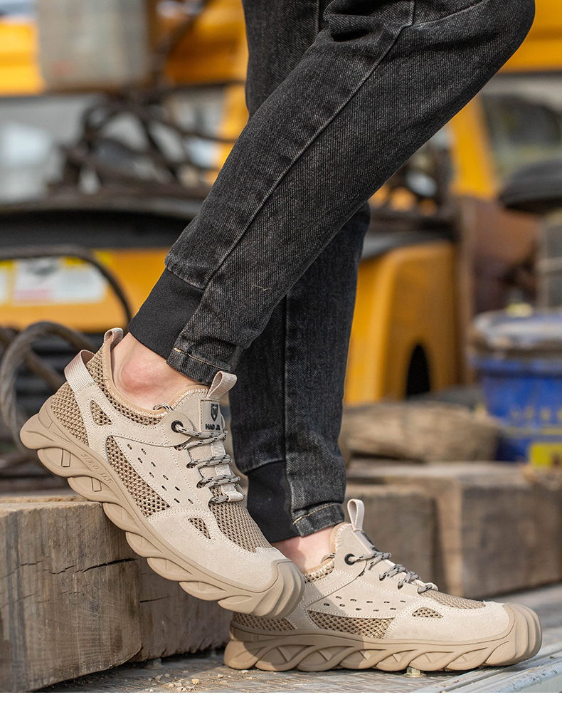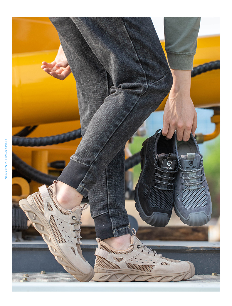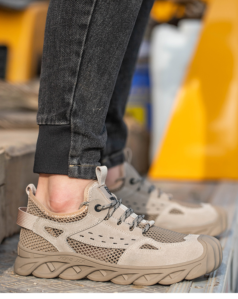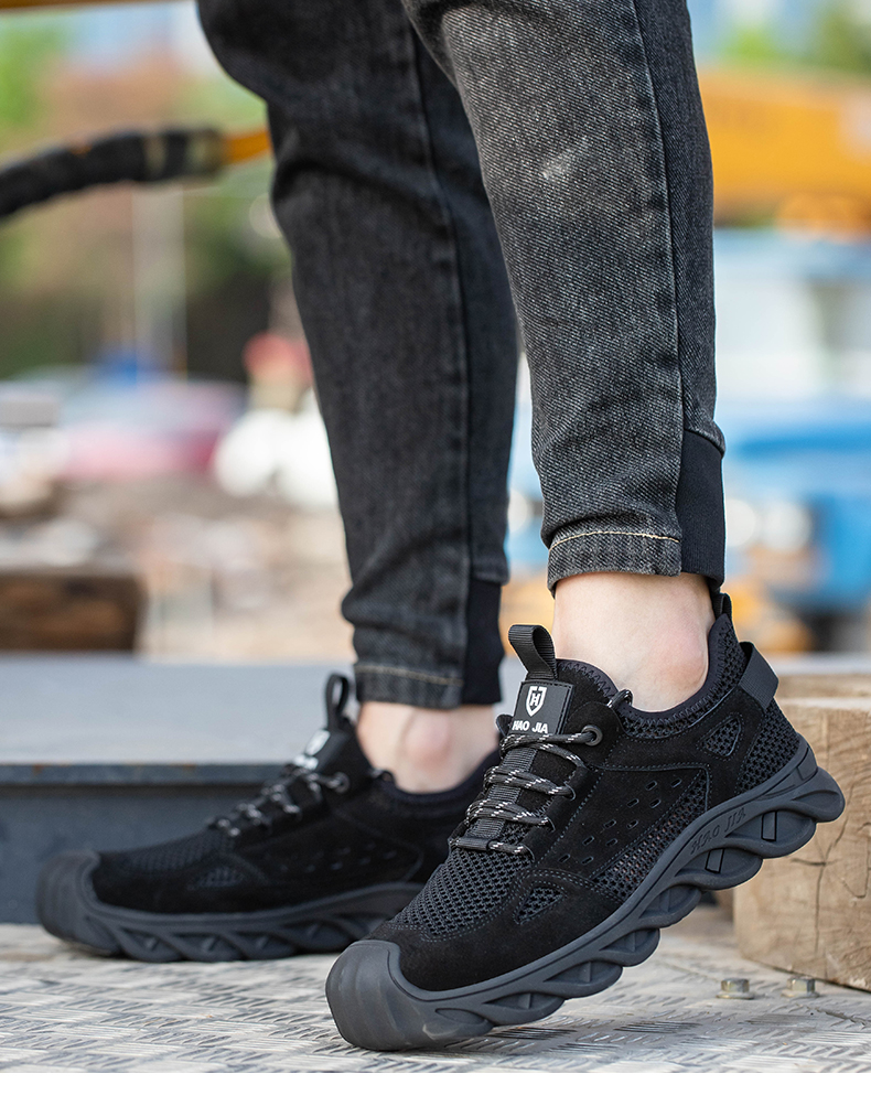 Men's Safety Work Breathable Shoes Steel Toe Men's Work Boots Mesh Upper Lightweight Safety Shoes