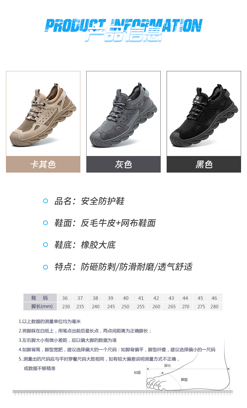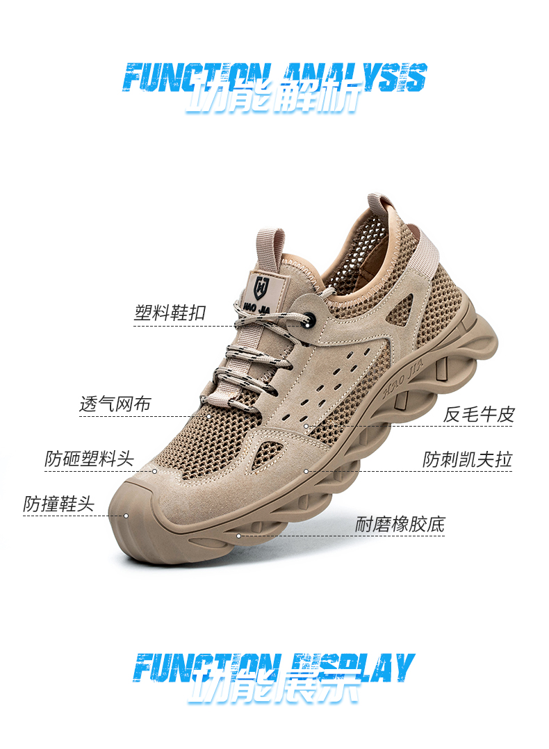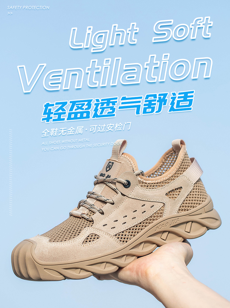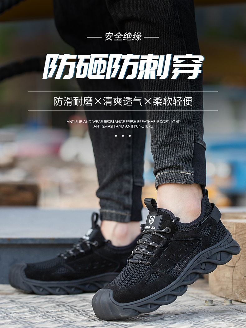Men's Safety Work Breathable Shoes Steel Toe Men's Work Boots Mesh Upper Lightweight Safety Shoes