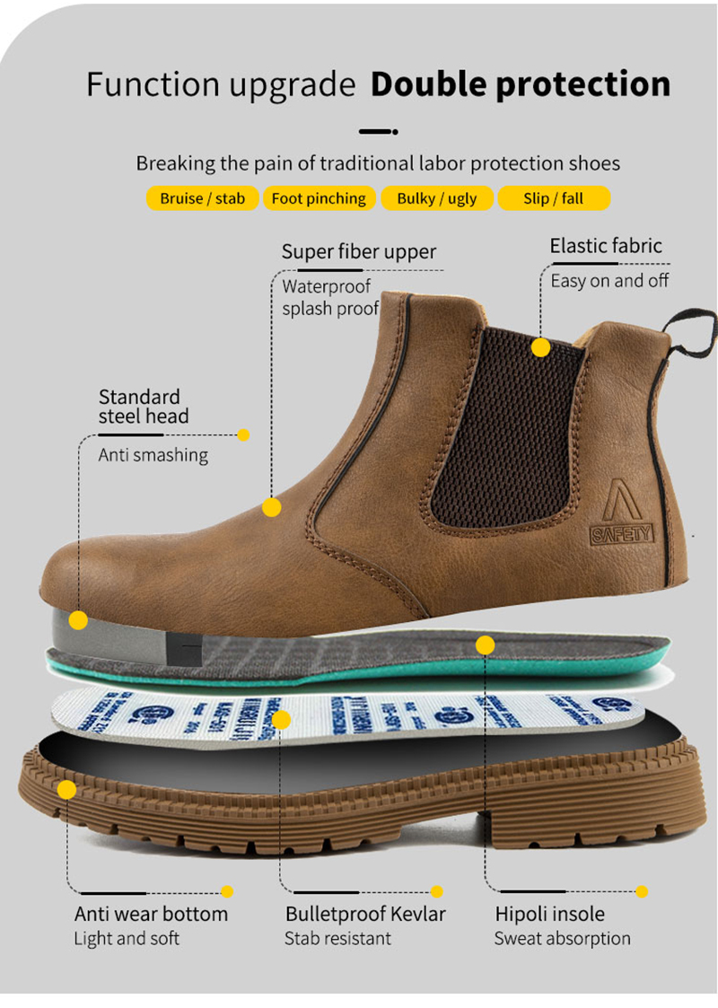 PU Leather Work Safety Boots Men's Chelsea Boots Men's Work Shoes Men's Winter Boots Men's Steel Toe Shoes