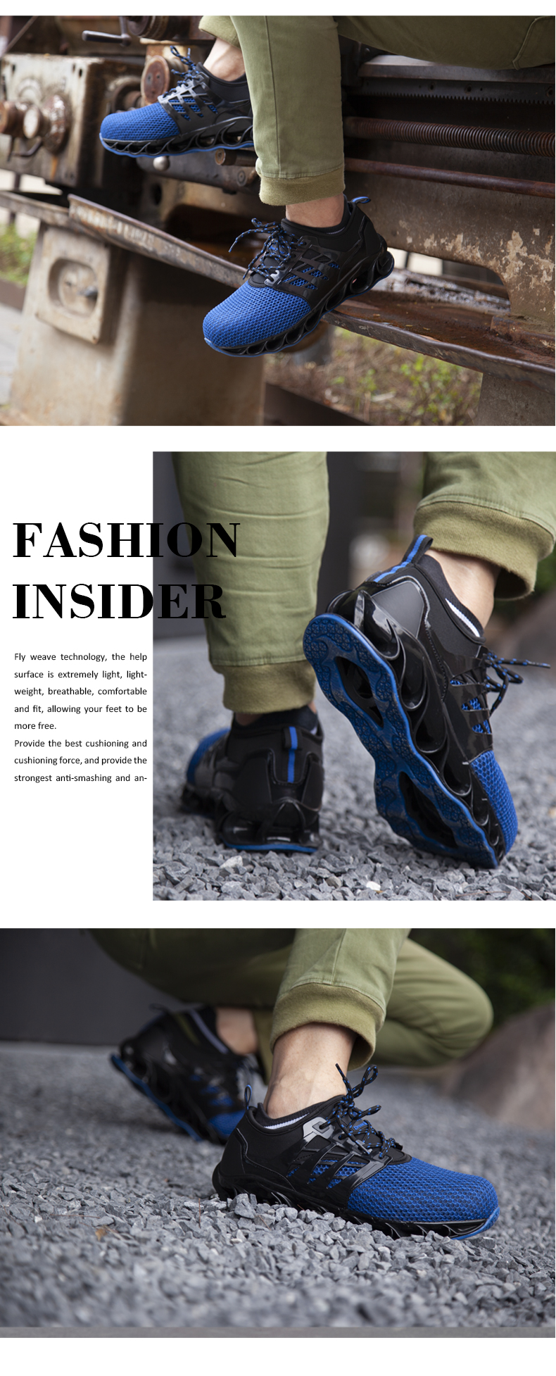 Men's boots stab-proof shoes men's breathable work shoes men's work sneakers slip-on men's shoes